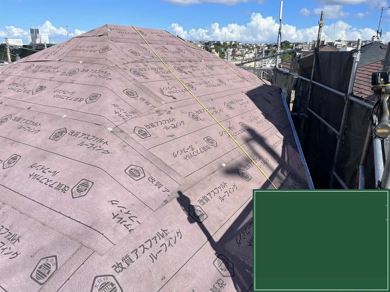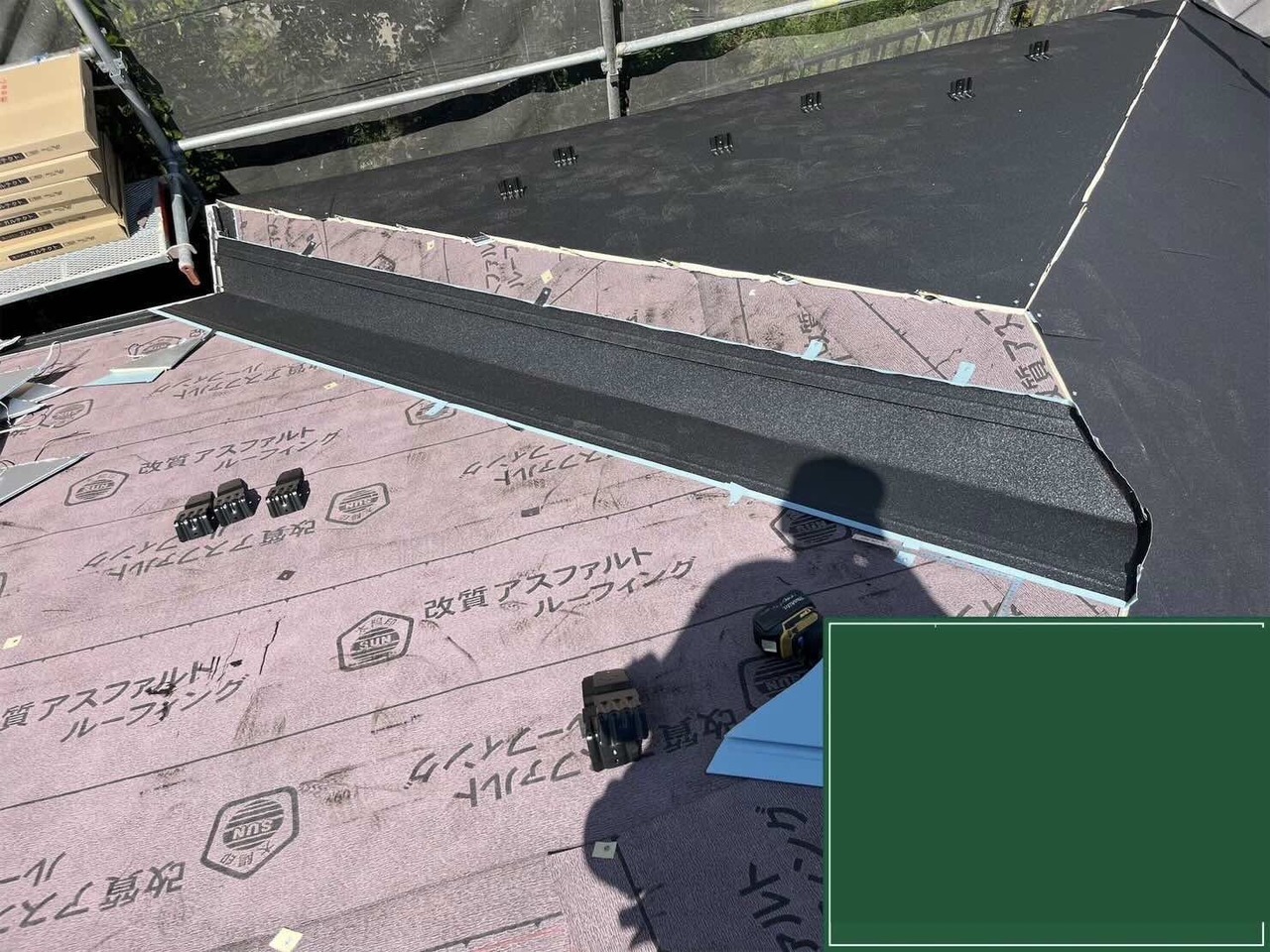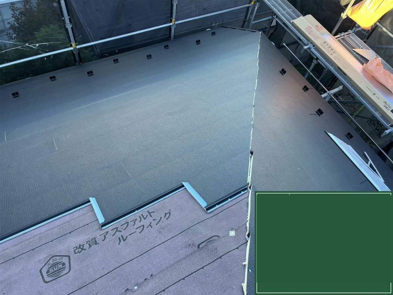 既存屋根の上にルーフィング(防水シート)を設置します。