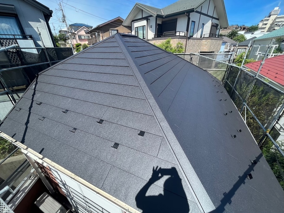また、築年数の経過により劣化が見られたパミール屋根を、軽量で高耐久な「スーパーガルテクト(シェイドブラック)」へ葺き替えました。