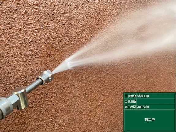 カビ・コケ・チョーキングなどの付着物などを、高圧の水流で