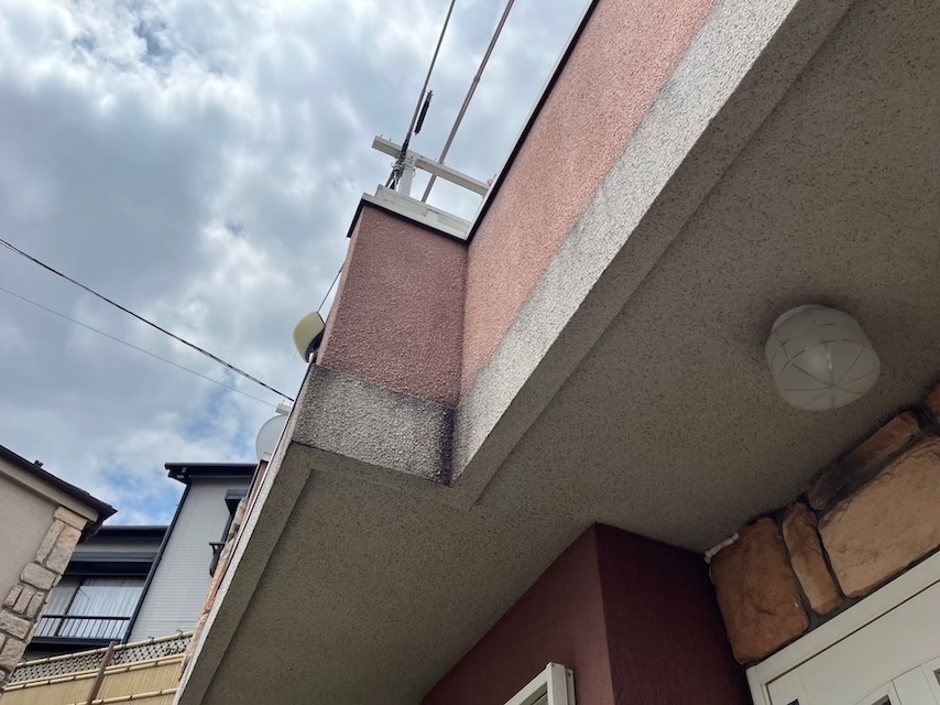 既存のモルタル壁が劣化していたのでカチオンシーラーにて下地処理いたしました。