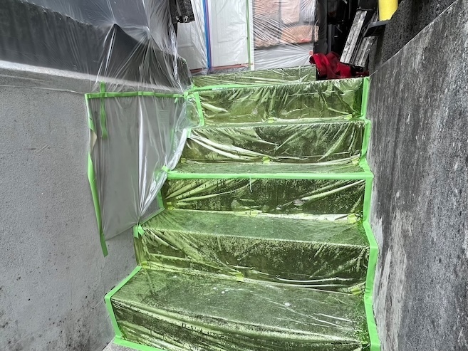 バルコニー内部を汚さないようにしっかり養生保護します。